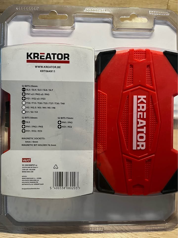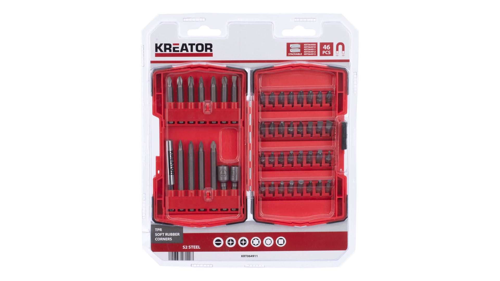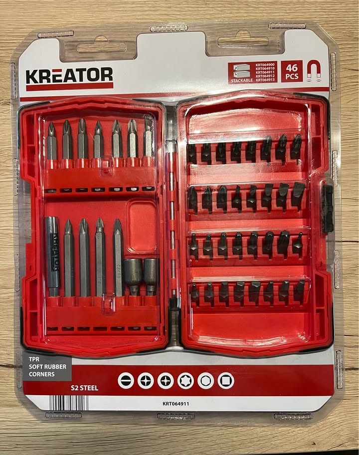 25 mm-es bitekkel: (Philips®) PH1 * 2, PH2 * 3, PH3 (Pozidriv) PZ1, PZ2 * 3, PZ3 (Egyenes) SL3, SL4, SL5, SL6, SL7 (Torx®) T10, T15, T20, T25, T27, T30, T40, (Hex) H2, H2,5, H3, H4, H5, H6, (Négyzetes) S1, S2, S3