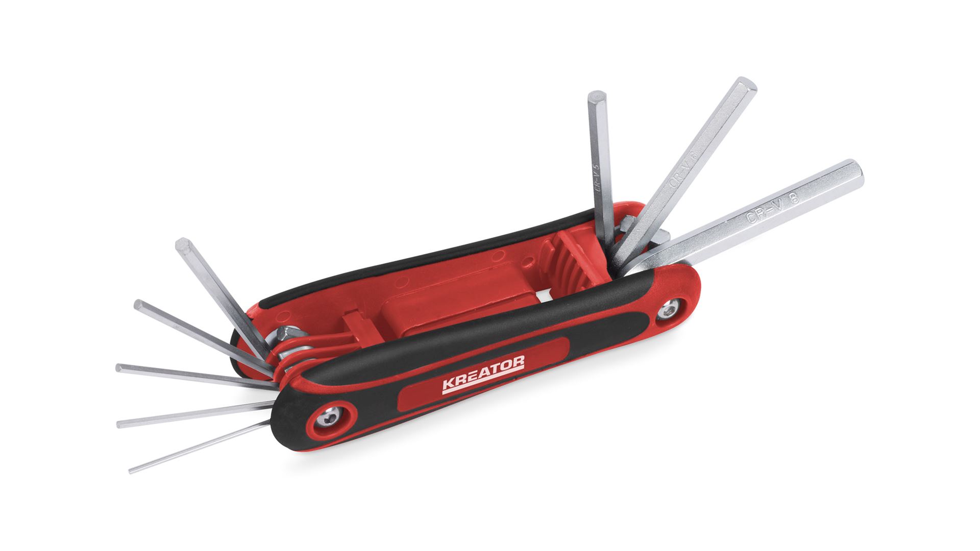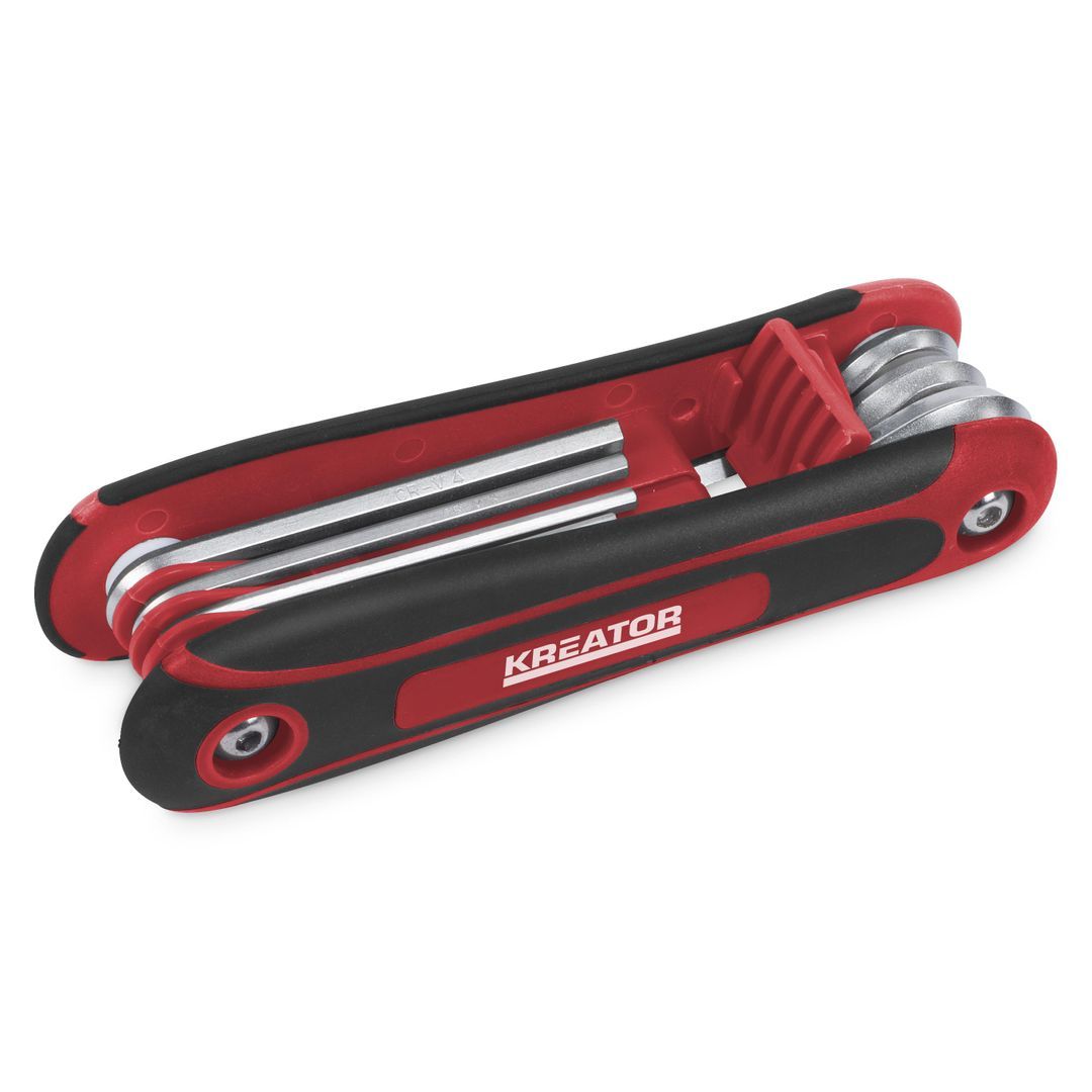 Ez egy praktikus, 8 darabos, L alakú imbuszkulcs készlet a Kreator termékcsaládunkból. Akárcsak egy svájci zsebkést, a kulcsokat is kinyithatod, és máris elkezdheted a munkát. Kiváló minőségű króm-vanádium ötvözetből készültek.