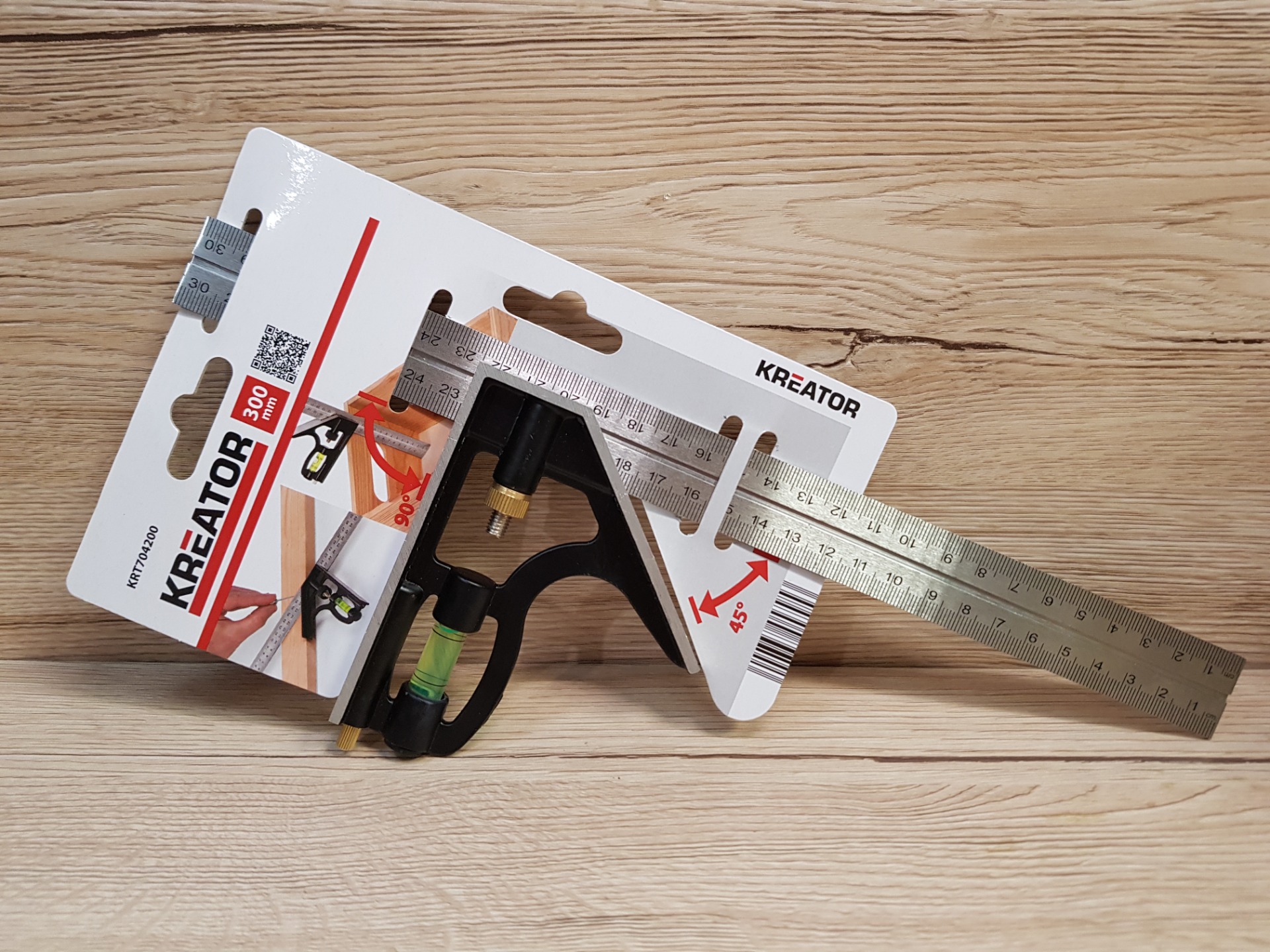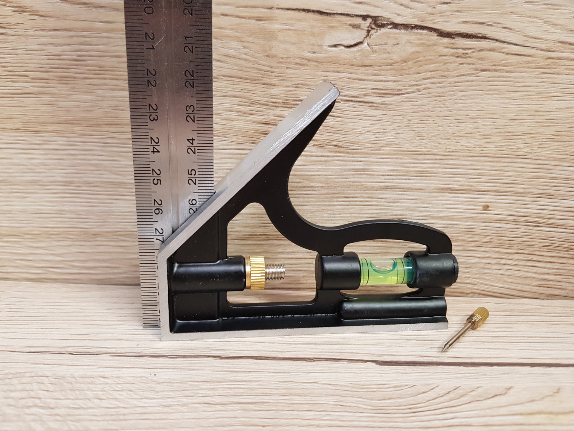 Ha szögeket kell ellenőriznie vagy jelölnie, ez a kombinált derékszögű mérőeszköz a megfelelő eszköz az Ön számára. Akár 300 mm-ig is mérhet, és cm-es és hüvelykes beosztással is rendelkezik.
