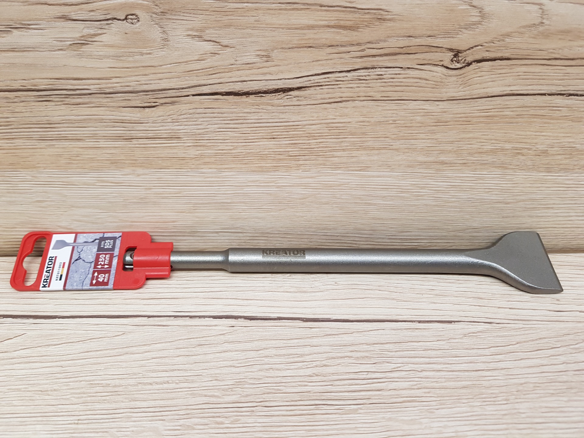 Ez a véső SDS plus típusú szárral rendelkezik, 250 mm hosszú és 40 mm széles. Ideális kő vagy beton véséséhez.