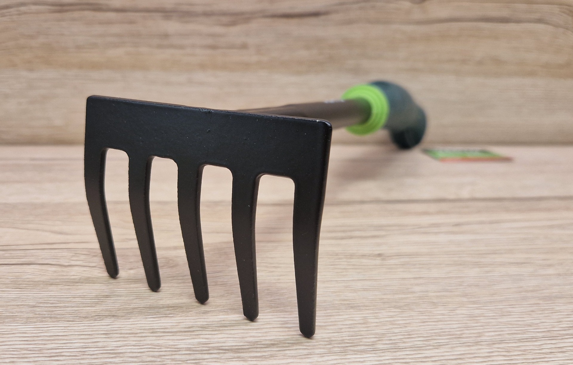 A vetemedésálló ötágú készlet optimális gereblyézési és vágási képességeket biztosít. A szerszám könnyű súlya megkönnyíti a munkát, a csúszásmentes fogantyú pedig biztos fogást biztosít.